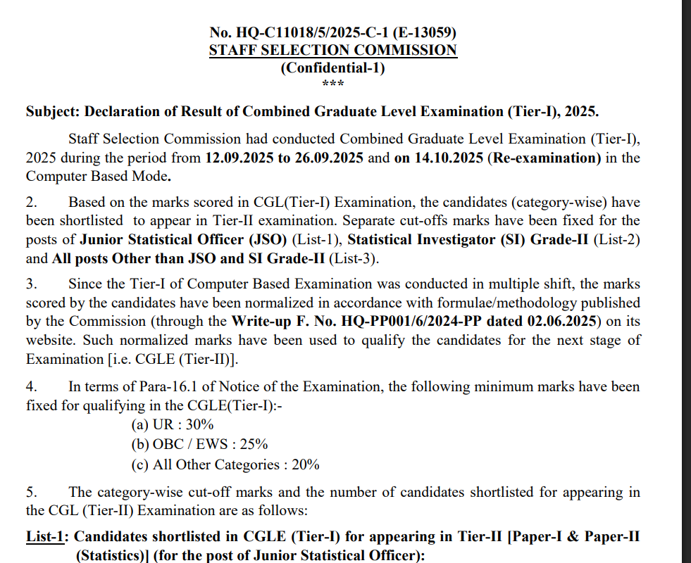 SSC CGL Result 2025 – संक्षिप्त जानकारी